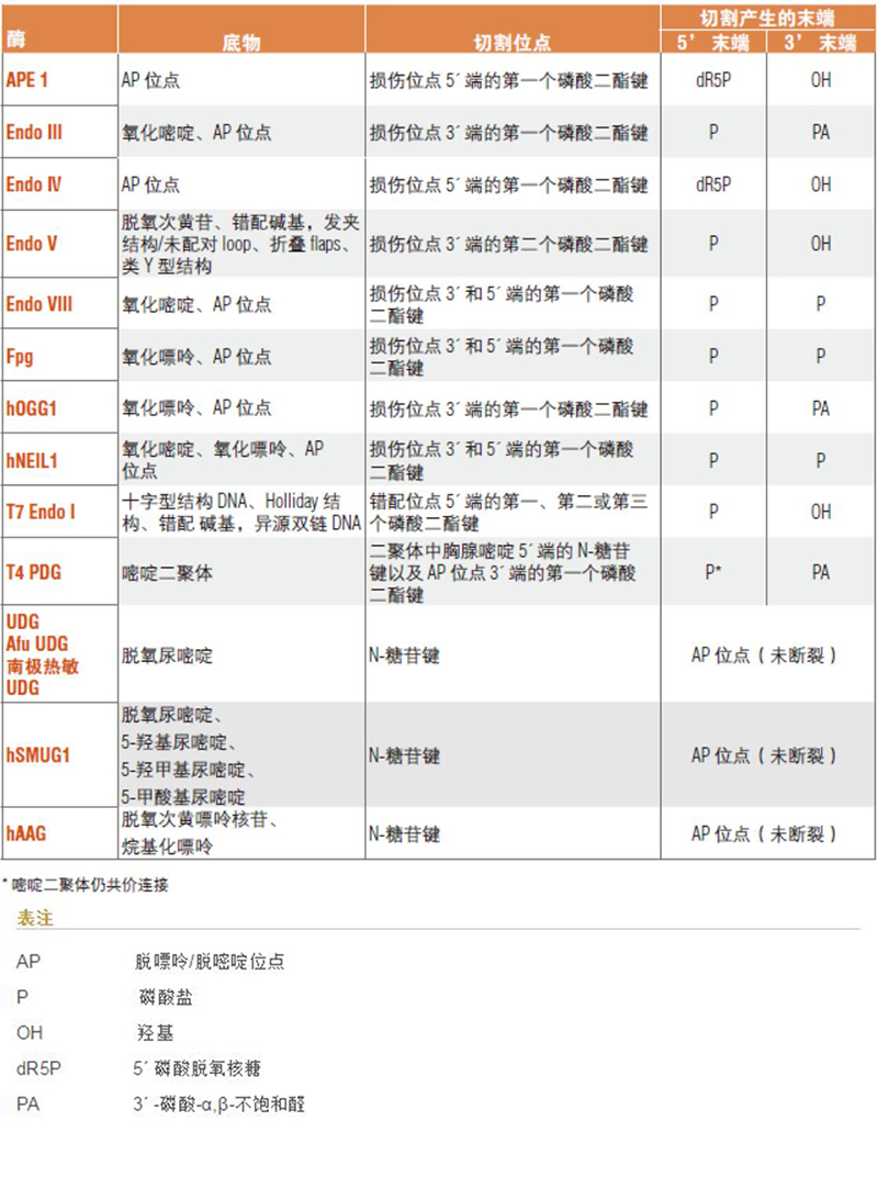 来自于NEB的DNA修复酶的特性。